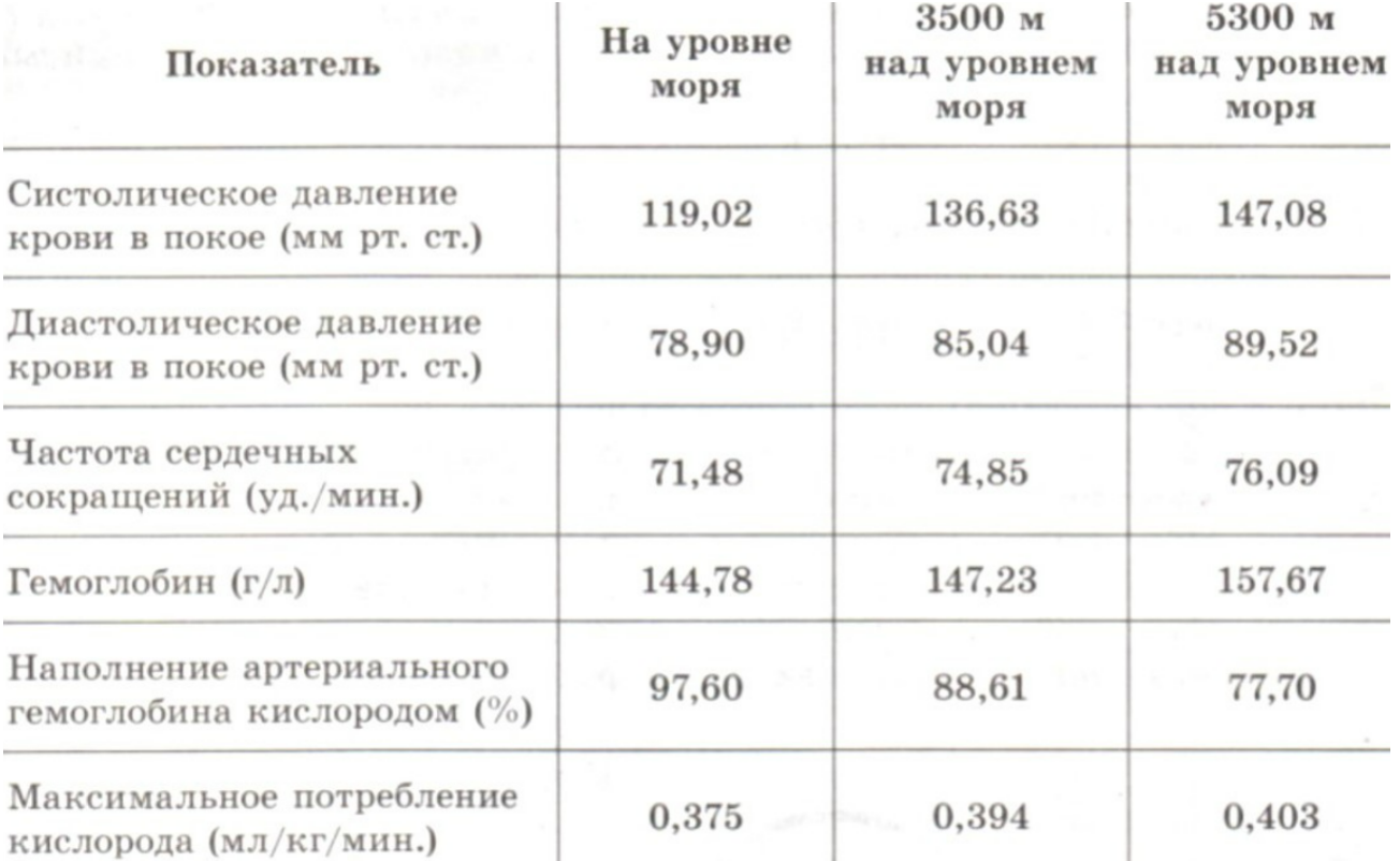 5) Физиологические показатели организма зависят от высоты над уровнем моря.