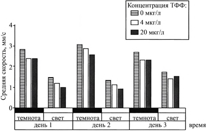 3) Наличие в воде ТФФ снижает подвижность мальков рыбок.
