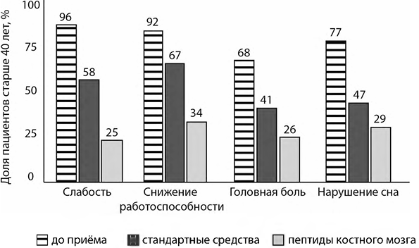 4) До приёма препарата на основе пептидов более 90 % испытуемых жаловались на слабость и сниженную работоспособность.