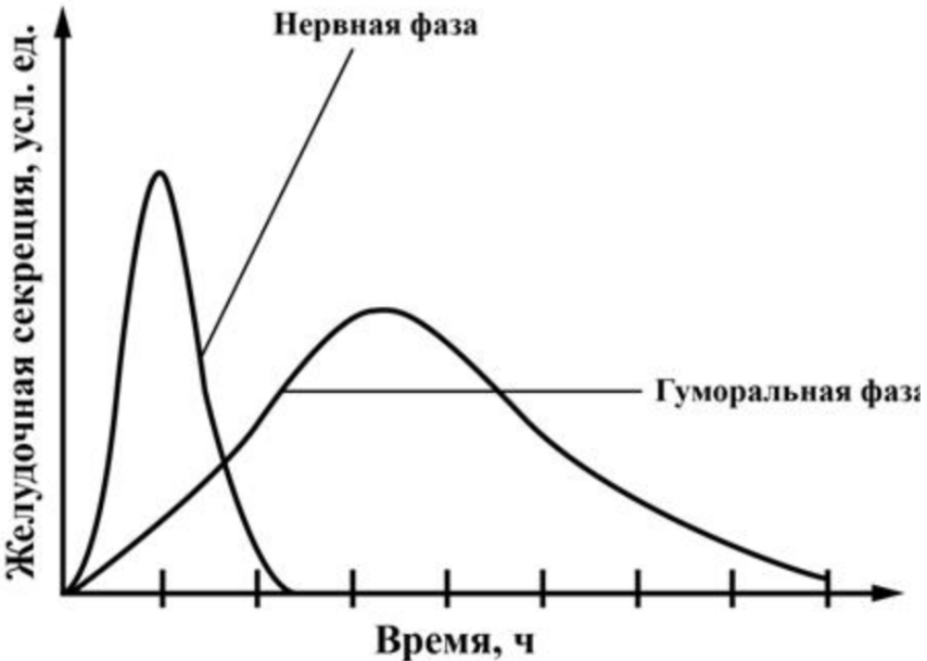 2) Наиболее продолжительная секреция желудочного сока происходит под действием гормонов.