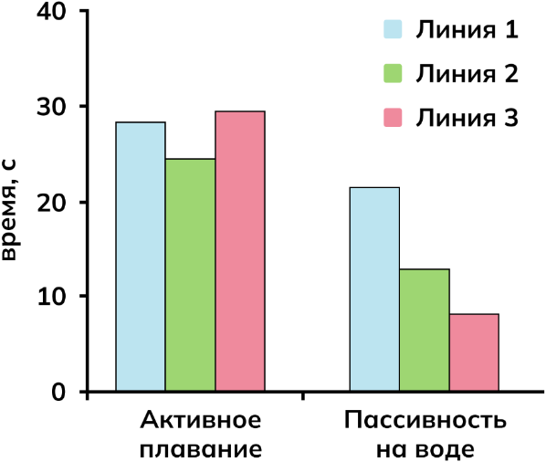 4) Мыши линии 1 дольше других пассивно лежали на воде.
