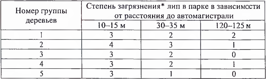 Проанализируйте таблицу «Загрязнение стволов лип солями тяжёлых металлов».