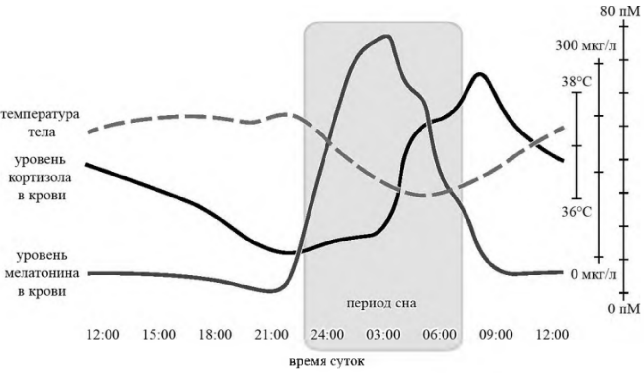 4) В предрассветные часы на фоне повышения уровня кортизола происходит снижение уровня мелатонина.