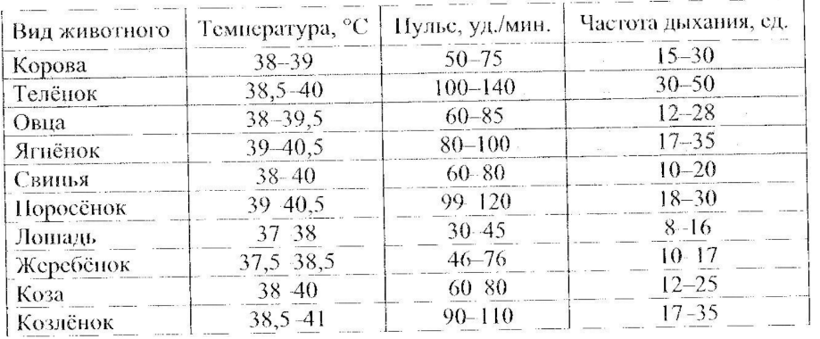 4) Пульс детенышей мелкого рогатого скота, представленных в таблице, изменяется больше чем на 30 уд./мин.
