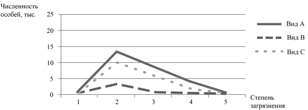 Проанализируйте график «Численность отдельных видов тихоходок в лишайниках в зонах с различной степенью загрязнения». Выберите утверждения, которые можно сформулировать на основании анализа представленных данных. Запишите в ответе цифры, под которыми указаны выбранные утверждения.