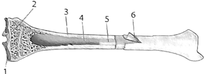 Выберите три верно обозначенные подписи к рисунку, на котором изображено строение кости взрослого человека. Запишите цифры, под которыми они указаны.