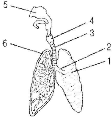 Выберите три верно обозначенные подписи к рисунку, на котором изображено строение дыхательной системы человека. Запишите цифры, под которыми они указаны.