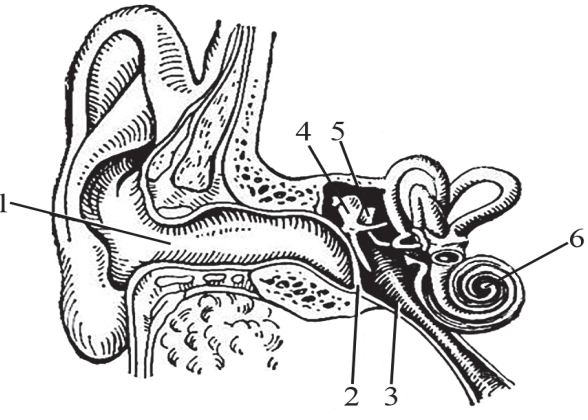 Выберите три верно обозначенные подписи к рисунку, на котором изображено строение уха человека. Запишите цифры, под которыми они указаны.