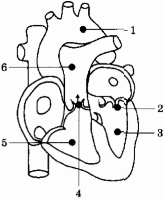 Выберите три верно обозначенные подписи к рисунку, на котором изображено строение сердца человека. Запишите цифры, под которыми они указаны.