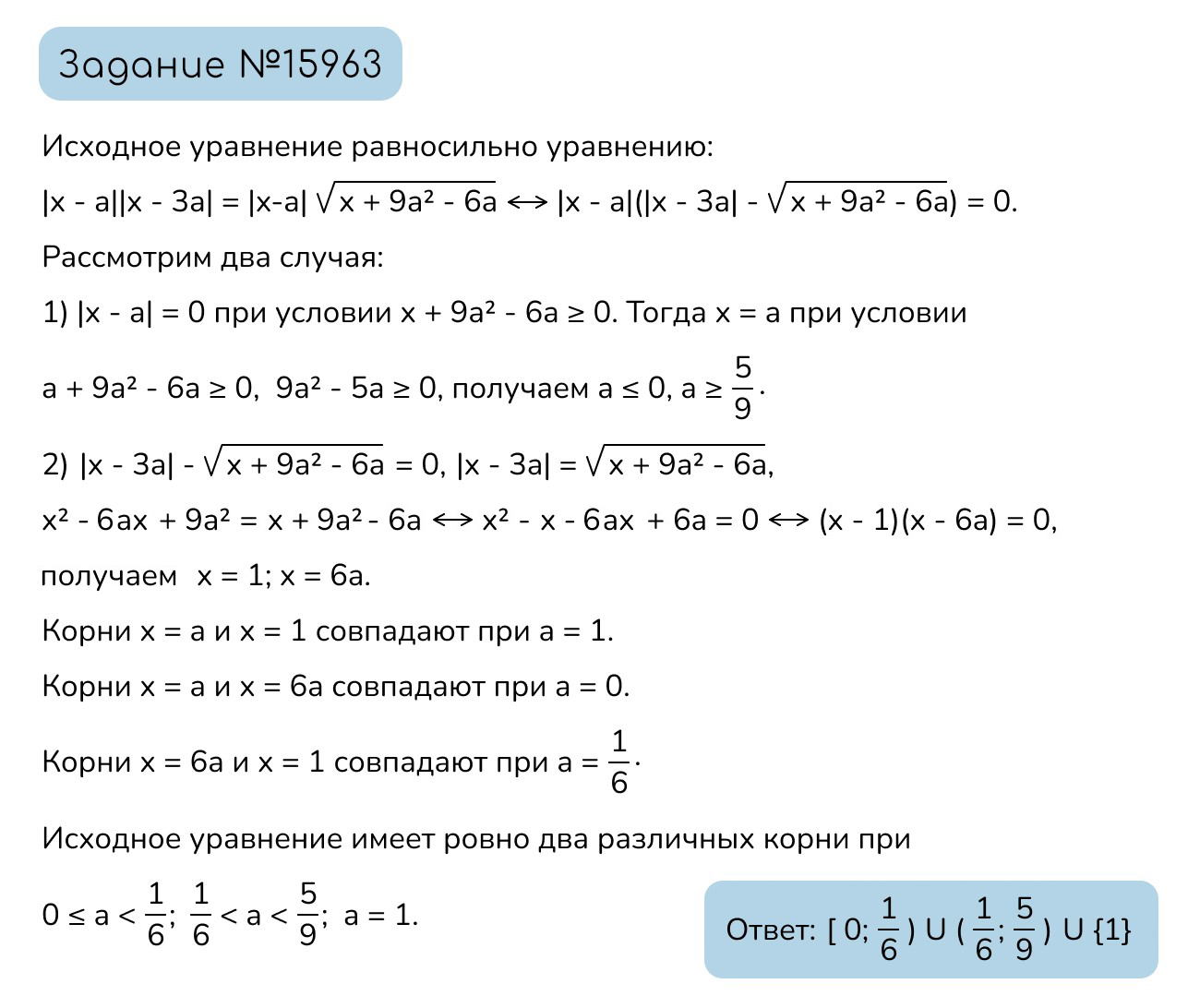 Найдите все значения параметра a, при каждом из которых уравнение