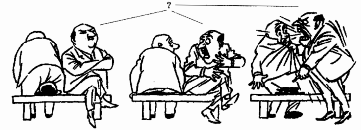 Рассмотрите рисунок — карикатуру X. Бидструпа "Темперамент". Назовите тип темперамента человека, обозначенного вопросительным знаком. Укажите тип и характеристику его нервной системы. Заполните пустые ячейки таблицы, используя термины и характеристики, приведённые в списке. Для каждой ячейки, обозначенной буквой, выберите соответствующие термины и характеристику из предложенного списка.