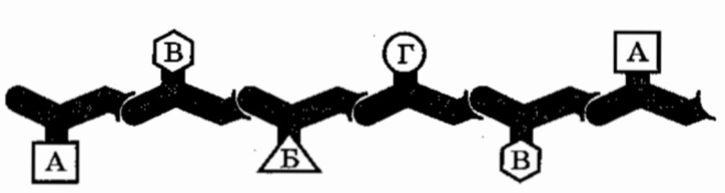 Рассмотрите рисунок с изображением полипептида и укажите уровень его организации, форму молекулы и вид взаимодействия, поддерживающие эту структуру. Заполните пустые ячейки таблицы, используя термины и понятия, приведённые в списке. Для каждой ячейки, обозначенной буквой, выберите соответствующий термин или соответствующее понятие из предложенного списка.