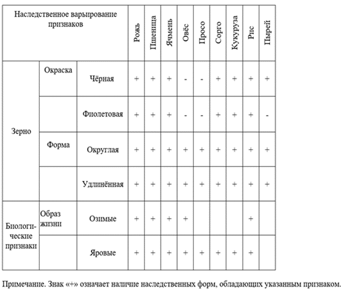 Рассмотрите таблицу наследственного варьирования признаков у злаковых растений. Заполните пустые ячейки таблицы, используя элементы, приведенные в списке. Для каждой ячейки, обозначенной буквой, выберите соответствующий элемент из предложенного списка.