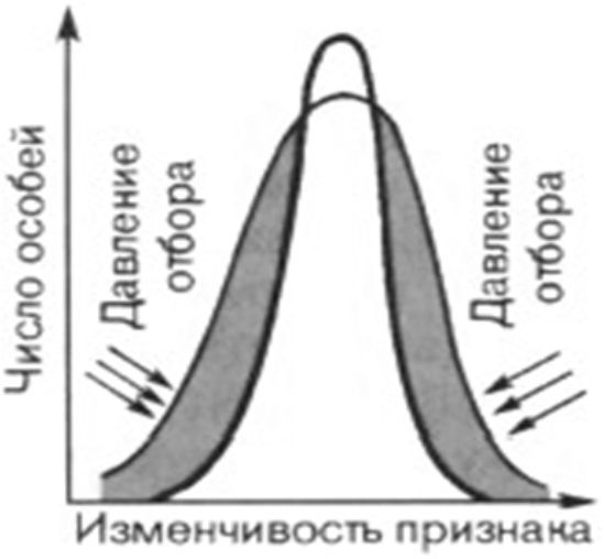 6) сохранение организмов с двумя крайними отклонениями от среднего значения признака