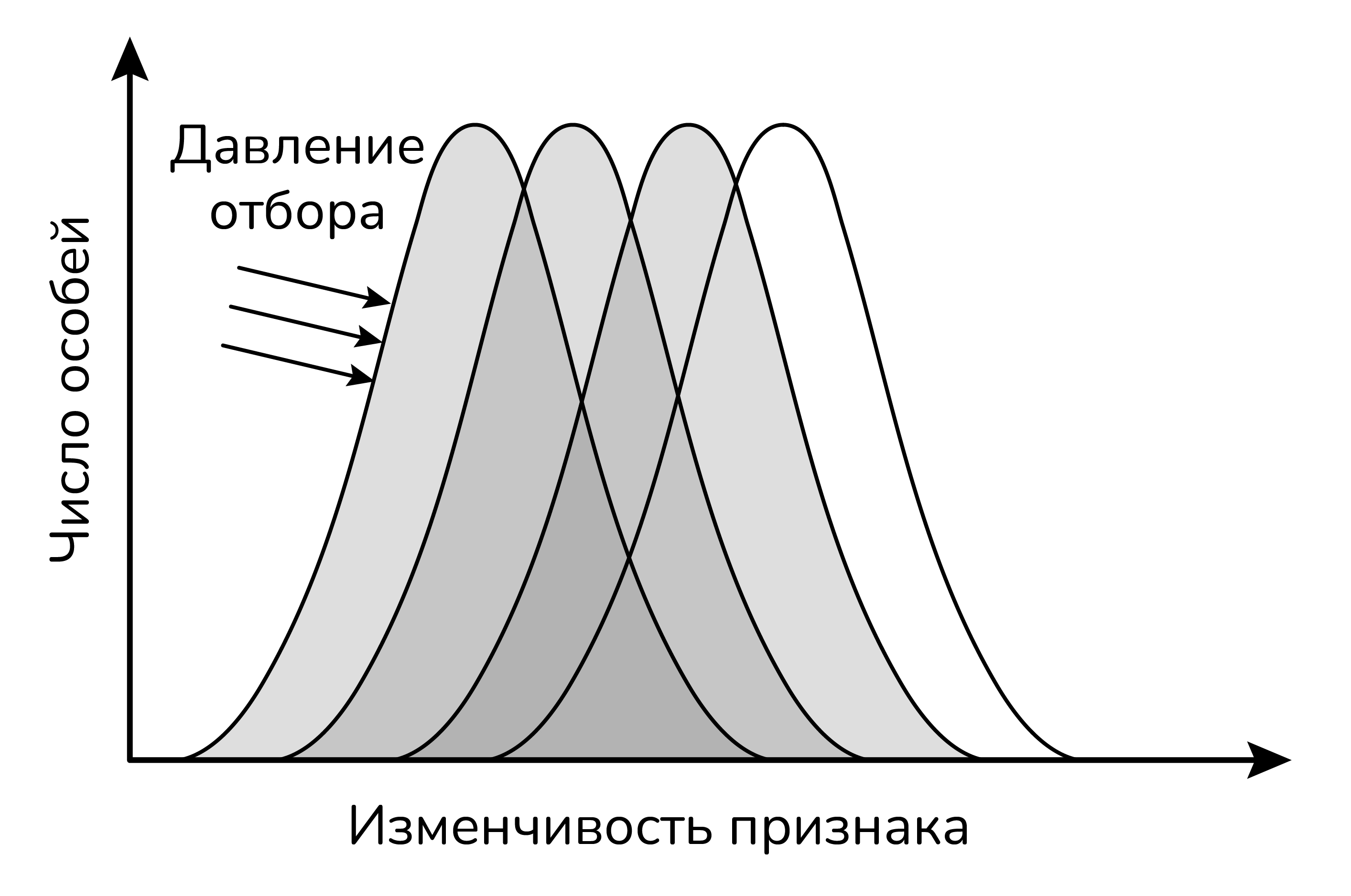 Рассмотрите график «Форма естественного отбора». Заполните пустые ячейки таблицы, используя элементы, приведенные в списке. Для каждой ячейки, обозначенной буквой, выберите соответствующий элемент из предложенного списка.