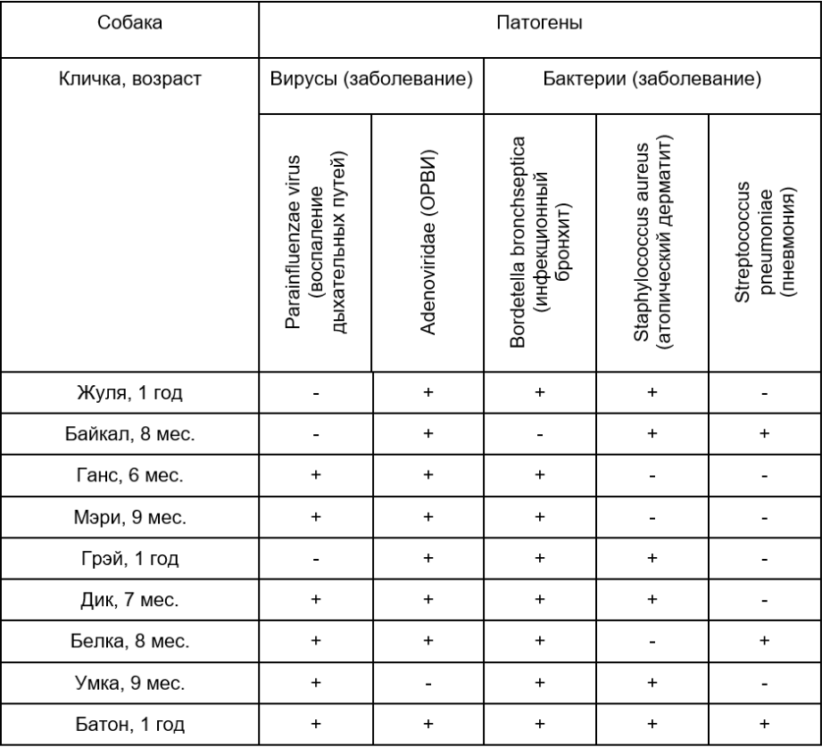 Проанализируйте таблицу «Разнообразие бактерий и вирусов при респираторных инфекциях у собак». Выберите все утверждения, которые можно сформулировать на основании анализа представленных данных. Запишите в ответ цифры, под которыми указаны выбранные утверждения.